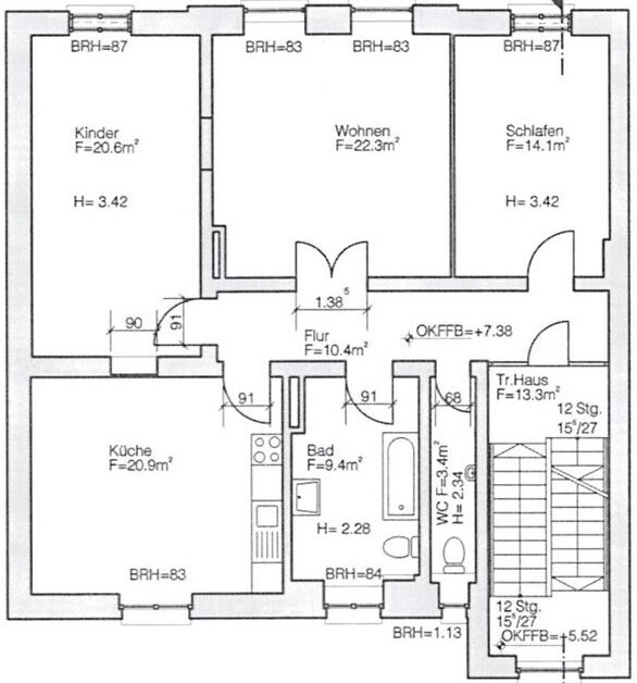 Frisch renovierte Altbauwohnung mit ca. 101 m² Wohnfläche, beeindruckenden Deckenhöhen von ca. 4,90 m und stilvollen Flügeltüren. Drei Zimmer, große Wohnküche, neues Tageslichtbad mit Badewanne, separates WC sowie Gemeinschaftsgarten. Gas-Etagenheizung, Energieeffizienzklasse F, Keller und Waschküche vorhanden.